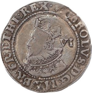 This specimen was lot 37035 in Stack's Bowers NYINC sale (New York, January 2025), where it sold for $240. The catalog description[1] noted, "GREAT BRITAIN. 6 Pence, ND (1625). London Mint; mm: Lis. Charles I. PCGS VF-30. Group A. From the Richard August Collection." This sixpence was struck by Charles I at the beginning of his reign. Note the ruffed collar, a design replaced by a lace collar on later issues.