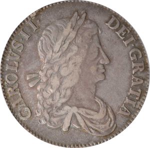 This specimen was lot 31231 in Stack's Bowers ANA sale (Chicago, August 2022), where it sold for $1,200 The catalog description[1] noted, "GREAT BRITAIN. Crown, 1663. London Mint. Charles II. PCGS EF-45. This lightly circulated example offers some charming mint bloom that remains on the surfaces and overall solid details. Deeply toned, with moderating lighter color, the present specimen provides a strong example of the ever popular Crown of Charles II. From the Mark and Lottie Salton Collection." Silver crowns were struck for Charles II 1662-85; this subtype appears for 1663 only, the same year as the famed "Petition" crown.