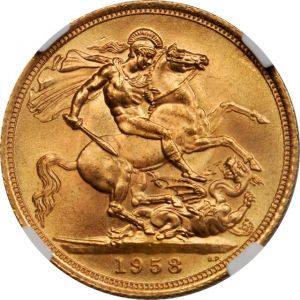 This type of 1957-68 is the first large issue of sovereigns since George V but these were sold to investors and collectors and not issued for circulation.