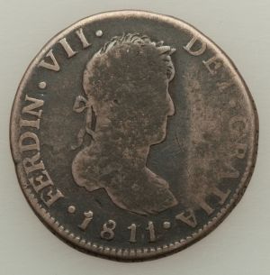 This specimen was part of lot 35306 in Heritage sale 3038 (Dallas, January 2015), which sold for $822.50. The catalog description[1] noted, "Ferdinand VII Lot of Fifteen 2 Reales Coins, KM62 & KM67. Various dates and grades. Average grade is VG/Fine. From The Santa Maria Collection." This specimen is an example of a type struck in Guatemala 1811-21 with a few backdated 1808. This "standard bust" two reales is the most common two reales from Guatemala with 1821 as the most common date. Guatemala avoided the violence that devastated Mexico during the war of independence but joined Iturbide's empire in 1821.