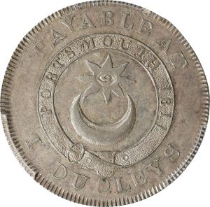 This specimen was lot 75156 in Stack's Bowers Collectors Choice sale (Costa Mesa, CA, September 2023), where it sold for $384. The catalog description[1] noted, "GREAT BRITAIN. Trade Tokens. Hampshire. Portsmouth. Silver Shilling Token, 1811. PCGS AU-58. Milled edge. Pale argent and steel gray surfaces remain fresh after over two centuries of survival. Complete luster stretches across both fields and devices, though there is perhaps just a little too much handling for PCGS to consider a Mint State grade. An ideal and somewhat necessary acquisition for numismatists who want to build Shilling Token sets. From the David Sterling Collection." Altho we have filed this with the Conder tokens, it is not, being silver and issued after the publication of Conder's book.