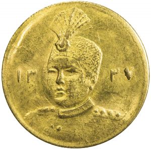 - AH 1339 (1920) gold 5000 dinars, shah with collar, open wreath on reverse
