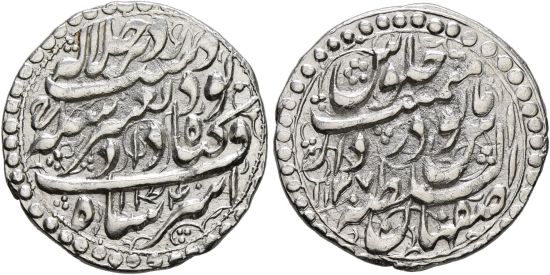 - AH 1135 5 shahi, Isfahan mint, Mahmud Shah