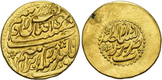 Nader Shah's assassination in AH 1160 left no clear successor and his sons and nephews contended for the throne backed by shifting tribal alliances. Adel Shah, ruler AH 1160-1161, yielded to Ibrahim in AH 1161-1162. The gold issues of Adel Shah are all rare.