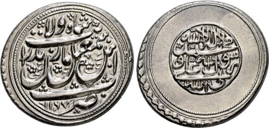 "IRAN Safavid Dynasty, Isma'il III. 1163-1169 AH (1750-1756). Rupi 1167 AH (1753/1754), Mazandaran Mint. Vorzüglich-FDC, Leicht gereinigt. Sehr attraktive Prägung, About Uncirculated. Lightly cleaned. Very appealing specimen. Purchased from A. Saeedi, London, in 1995."