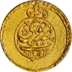 The first specimen was lot 23062 in Stack's Bowers ANA sale (Las Vegas, August 2020), where it sold for $840. The catalog description[1] noted, "IRAN. Zand Dynasty. 1/4 Mohur, AH 1192 (1778). Khuy Mint. Karim Khan. PCGS MS-65 Gold Shield. A well struck and centered little Gem quality coin, outstanding for the type." The second specimen was lot 2919 in Sincona sale 83 (Zürich, May 2023), where it sold for 425 CHF (about US$569 including buyer's fees). The catalog description[2] noted, "IRAN, Karim Khan, 1166-1193 AH (1753-1779). 1/4 Mohur 1192 AH (1778), Khoy. NGC MS63." The Zand dynasty, founded by Karim Khan Zand, conquered and ruled most of Afsharid Iran (except Khorasan) in the eighteenth century. Karim Khan's successors lacked his ability and the state soon crumbled under Qajar attacks. The SCWC notes that this type was struck AH 1190-1193 at Khuy (shown here), Tabriz, Shiraz, Kirman, Kashan, Rasht and Rekab.