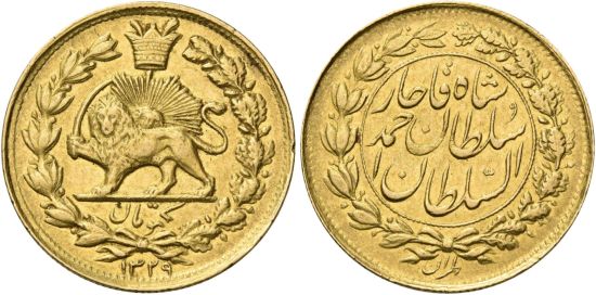- AH 1329 gold 5000 dinars
