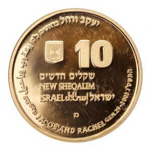 This specimen was part of lot 1258 in Goldberg sale 116 (Los Angeles, June 2020), which sold for $960. The catalog description[1] noted, "Israel. Gold 10 New Sheqalim, plus Silver 1 and 2 New Sheqalim, 2003. KM-376-374. Biblical Art. Jacob and Rachel. In presentation case. Lot of 3 coins. Choice Brilliant Proof." This NCLT was accompanied by a two new sheqalim (KM 375) and a silver new sheqel (KM 374).
