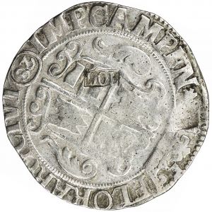 This specimen was lot 1368 in Stephen Album sale 30 (Santa Rosa, CA, January 2018), where it did not sell. The catalog description[1] noted, "HOLLAND: AR 28 stuivers, ND (1693), HOL countermark on (16)85 Kampen 28 stuivers, uneven strike, countermark bold, Choice VF on Fine-VF host. Due to the high numbers of light weight coinage in circulation, coins meeting weight standards were countermarked with this 'HOL' counterstamp for Holland in 1693." This type is noted for 1680-86 and is not priced as particularly expensive tho choice specimens are doubtless rare. This one was counterstamped "HOL" in 1693, indicating that it was of acceptable weight to continue to circulate. The counterstamp is rare.