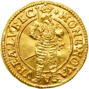 This type is listed in the SCWC for 1610-1759. As the city of Lubeck was a republic, not a monarchy, there was no need to periodically update the ruler's portrait. The standing knight design is strongly reminiscent of Dutch ducats of the same period.