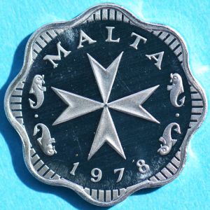 Malta was granted independence by Great Britain in 1964. Coinage was not inaugurated until 1972, when the republic was inaugurated. The obverse features a bust of Penthesilea, queen of the Amazons. This type was struck 1972 and 1976-81 at the Franklin mint. In 1982, one Maltese pound = US$2.45. Malta has since joined the EU and adopted the euro, rendering the Maltese pound obsolete.