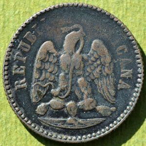 This issue from the Zacatecas mint is priced about triple a common date from the Mexico City mint. The Zacatecas mint issued copper one centavos 1872-81 before closing permanently in 1905.