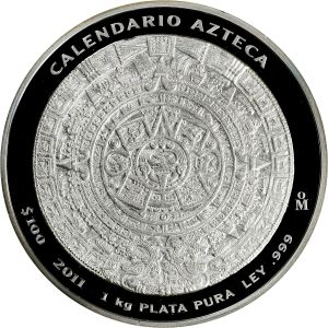 - 2010 100 pesos, Aztec calendar, 1 kg silver
