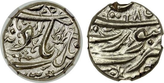 This specimen was lot 883 in Stephen Album sale 45 (Santa Rosa, CA, January 2023), where it sold for $840. The catalog description[1] noted, "MUGHAL: Jahangir, 1605-1628, AR ½ rupee, Surat, AH(10)33 year 18, KM-, month of Aban; same legends and arrang[e]ment as the full rupee type KM-148.1; extremely rare type, even more so in this grade, NGC graded AU58, RRR. Only 4 examples of this type on CoinArchives, one graded nearly EF (with the Hijri date off flan), the others much lower grades."