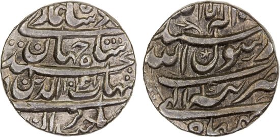This specimen was lot 2589 in Steve Album Auction 51 (Santa Rosa, CA, January 2025), where it sold for $168. The catalog description[1] noted, "MUGHAL: Shah Jahan I, 1628-1658, AR rupee, Tatta, AH1041 year 4, month of Mihr, without any testmarks, bold XF." Shah Jahan is most remembered today for having built the Taj Mahal as a mausoleum for his wife. His successors after Aurangzeb (r. 1658-1707) were not able to cope with external attack, Hindu rebellion and civil war and the empire broke up in the eighteenth century. Tatta struck this style years 1-33.