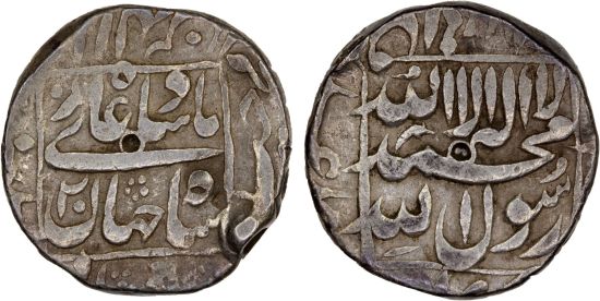 This specimen was lot 2567 in Steve Album Auction 51 (Santa Rosa, CA, January 2025), where it sold for $42. The catalog description[1] noted, "MUGHAL: Shah Jahan I, 1628-1658, AR 1/2 rupee, Patna, year 20, 3 testmarks (one of them on the edge), F-VF." Shah Jahan is most remembered today for having built the Taj Mahal as a mausoleum for his wife. His successors after Aurangzeb (r. 1658-1707) were not able to cope with external attack, Hindu rebellion and civil war and the empire broke up in the eighteenth century. Patna struck this scarce type years 7-12, 18, 20 along with thirteen other mints.