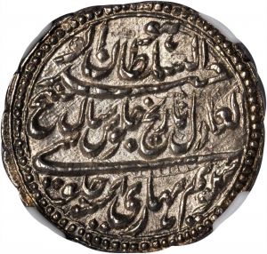 This specimen was lot 71048 in Stack's Bowers Collector's Choice sale (Santa Ana, CA, May 2018), where it sold for $1,200. The catalog description[1] noted, "INDIA. Mysore. Rupee, AM 1218, Year 8 (1789). Patan Mint. NGC MS-65. KM-126. A real beauty. Single finest certified at NGC. Sharply struck with soft satin luster and highly attractive. Ex: Paul Stevens Collection." The Indian state of Mysore, under her rulers Haider Ali (1761-82) and Tipu Sultan (1782-99), was a serious thorn in the side of the British Raj. This type was struck AM 1200, 1216-1223 and was accompanied by a half rupee (KM 125) and double rupee (KM 127). Rupees were also struck at the Dharwar, Farrukhi, Nagar, Khurshed-Sawad and Kalikut mints.