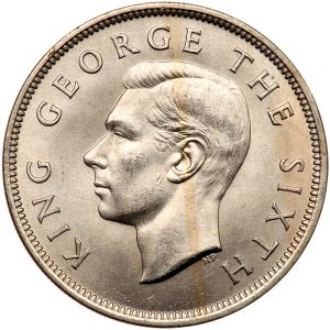 This specimen was lot 4210 in Goldberg sale 85 (Los Angeles, June 2015), where it did not sell. The catalog description[1] noted, "New Zealand. Halfcrown, 1948. George VI. Second highest certified grade. NGC graded MS-65." New Zealand did not receive her own coinage until 1933, British coins being used heretofore. Issue of pennies and half pennies did not begin until 1940. Half crowns were struck for George VI in 0.500 fine silver 1937-46, then copper-nickel for 1947. In 1948 the obverse was revised from "GEORGE VI KING EMPEROR" to "KING GEORGE THE SIXTH." The denomination was terminated upon decimalization in 1965.