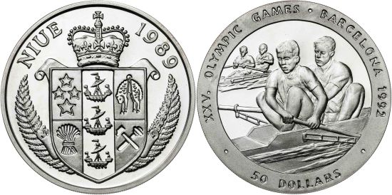 This specimen was lot 3428 in Aureo y Calicó sale 422 (Barcelona, December 2023), where it sold for 25 € (about US$32 including buyer's fees). The catalog description[1] noted, "Niue. 1989. 50 dólares. Juegos Olímpicos - Barcelona '92. AG. Proof." The coinage of Niue is comprised solely of NCLT's; the locals use New Zealand currency for daily transactions. Wikipedia comments, "As part of the Realm of New Zealand, New Zealand conducts most diplomatic relations on behalf of Niue. Niueans are citizens of New Zealand and Charles III is Niue's head of state in his capacity as King of New Zealand. Between 90% and 95% of Niuean people live in New Zealand...."