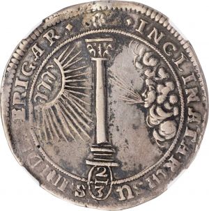 This specimen was lot 22612 in Stack's Bowers NYINC sale (New York, January 2020), where it did not sell. The catalog description[1] noted, "GERMANY. Nordhausen. 2/3 Taler, 1685-AD. NGC VF Details--Plugged. A VERY RARE issue that is seldom seen, this fractional Taler offers a great deal of detail remaining despite its holed and plugged nature. The obverse features a column separating a radiant tetragrammaton and a personification of the wind, while the reverse displays an ornately crested helmet." It was offered again as lot 72431 in Stack's Bowers Collectors Choice sale (Santa Ana, June 2020), where it sold for $480. Nordhausen was a small and obscure imperial free city surrounded by Hannover, Prussia and Saxony. We have filed it under its nearest neighbor, Stolberg. It was annexed to Prussia during Napoleon's rearrangement of Germany. It issued a few coins in the seventeenth century, all rare. This issue was accompanied by KM 40 (2/3 thaler), KM 35 (24 mariengroschen) and KM 37 (16 gute roschen).