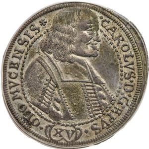This specimen was lot 997 in Goldberg Sale 146 (Los Angeles, July 2025), where it sold for $528. The catalog description[1] noted, "Austria: Olmütz. 15 Kreuzer, 1691. Carl II of Liechtenstein-Castelcorn, 1664-1695. Pop 1, only one graded at PCGS. PCGS graded AU-58. The Augustana Collection." This fifteen kreuzer was struck 1687-94; earlier fifteen kreuzer were struck 1664, 1675-77 and 1679. At this time, the 15 kreuzer was one sixth thaler but would slip to one eighth thaler on the introduction of the convention thaler. This ecclesiastical state was in Moravia, then part of Austria, now the Czech Republic. For the seventeenth century, Olmütz minors are common but thalers and ducats are rare.