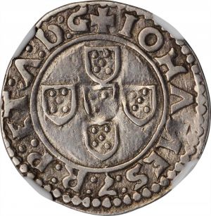 This specimen was lot 23500 in Stack's Bowers NYINC sale (New York, January 2020), where it sold for $264. The catalog description[1] noted, "PORTUGAL. 1/2 Tostao, ND (1521-57). Lisbon Mint. Joao III. NGC EF-45. Only gently handled and with problem free surfaces, this attractive specimen presents a well centered strike. A premium quality piece for the grade assigned."
