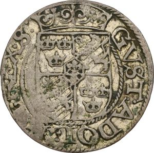This specimen was lot 11270 in Stack's Bowers Collectors Choice Online Auction (Costa Mesa, CA, February 2025), where it sold for €105 (about US$110). The catalog description[1] noted, "SWEDEN. 1/24 Taler, 162. Riga Mint. Gustav II Adolf. NGC AU-50. From the L. E. Bruun Collection." Riga, today the capital of Latvia, has long been an important port in the Baltic Sea. Gustavus Adolphus occupied it in 1621 and annexed it in 1629. The Swedes held it until forced to cede it to Peter the Great of Russia in 1721. This coin was struck 1622-35.