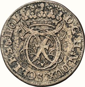 This specimen was lot 11530 in Stack's Bowers Collectors Choice Online Auction (Costa Mesa, CA, February 2025), where it sold for €85 (about US$89). The catalog description[1] noted, "GERMANY. 4 Schilling (Skilling), 1708 - BH. Schleswig-Holstein-Gottorp. Carl Frederik. NGC EF-45. From the L. E. Bruun Collection." The dukes of Schleswig-Holstein-Gottorp were a cadet branch of the house of Oldenburg, which ruled Denmark. They divided the rule of Schleswig-Holstein between them and the history of the duchies is the story of their quarrels and feuds. Eventually the ducal title passed to Peter III of Russia in 1762 who determined to use the Russian army to reconquer his province. This diversion of Russian resources was one of the causes of his ouster and murder in that year and his widow, Catherine the Great, sold his rights to the Danish, finally ending the argument after two centuries. This type was struck 1703-10, all with initials "BH". One thaler was 48 schilling. Charles Frederick (b. 1700, r. 1702-39) was the last duke to rule.