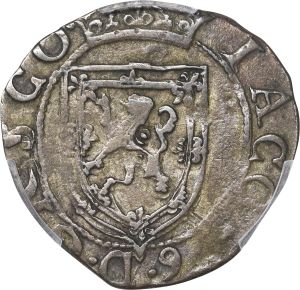 The first specimen was lot 37410 in Stack's Bowers NYINC sale (New York, January 2025), where it sold for $65. The catalog description[1] noted, "SCOTLAND. Groat (8 Pence), ND (1583-90). Edinburgh Mint. James VI. PCGS Genuine--Environmental Damage, EF Details. From the Richard August Collection." The second specimen was lot 76221 in Stack's Bowers Collectors Choice Online Auction (Costa Mesa, CA, February 2025), where it sold for $85. The catalog description[1] noted, "SCOTLAND. Groat (8 Pence), ND (1583-90). Edinburgh Mint. James VI. PCGS VF-30." In England, a groat was fourpence; in Scotland eight pence. The first groats were struck by David II in the fourteenth century.