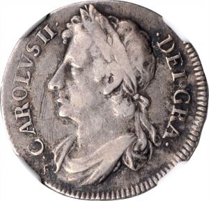 This specimen was lot 46028 in Stack's Bowers ANA sale (Costa Mesa, CA, August 2021), where it sold for $192. The catalog description[1] noted, "SCOTLAND. 1/8 Dollar (1/2 Merk), 1676. Edinburgh Mint; mm: F. Charles II. NGC F-15. Weight: Second Coinage. Dark steel-brown patina around the devices and old scratches on obverse. Well defined and nicely centered on the reverse. A charming piece. From the Loch Ness Collection." A merk was originally forty shillings Scots in the sixteenth century. Both the merk and the Scots shilling shrank in the intervening years and this half merk appears to have traded for six shillings and eight pence, or a little more than an English sixpence. The exchange rate between Scottish and English coinage varied but during this reign, 60 shillings = one English crown. This type was struck 1676, 1679-82.