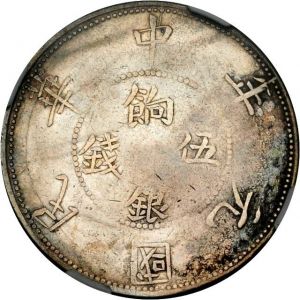 The specimen shown was lot 60565 in Ponterio sale 162 (Hong Kong, August 2011), where it sold for US$311. The catalog description[1] noted, "CHINA. Sinkiang. Mace, ND (1912). 民國元年壬子餉銀伍錢銀幣。NGC XF Details--Surface Hairlines. Wa She Wong Collection.”