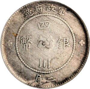 The specimen shown was lot 60636 in Ponterio sale 162 (Hong Kong, August 2011), where it sold for $717. The catalog description[1] noted, "Szechuan. 20 Cents, Year 1 (1912). 民國元年軍政府造四川銀幣二角。ICG VF-30.”