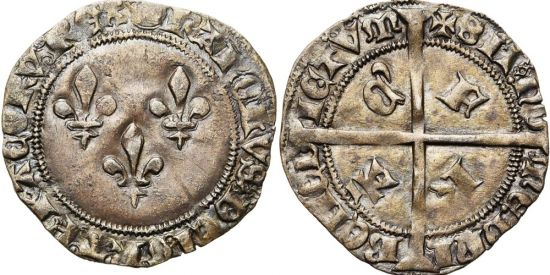 This type was not minted by the local robber baron but by the king of France himself. It is identical to the products of the other French mints except for the dot under the 16th letter of the legend. Duplessy notes that it had a face value of 7 deniers tournois. Two later emissions were made, in 1432 and 1432-33.