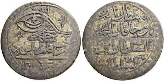This is listed in the SCWC under Tripoli/Libya as a 100 para, which mentions the dates AH 1209-1210 only. In the eighteenth century, Tripoli was one of the Barbary States preying on commerce plying the Mediterranean.