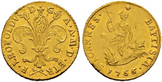 "ITALIA | Firenze. Pietro Leopoldo di Lorena, 1765-1790 Ruspone 1766. BB/Spl. Errore di tondello. (grand duchy of Tuscany, Peter Leopold of Lorraine, 1765-90, ruspone of 1766, very fine to extremely fine, edge defect.)"