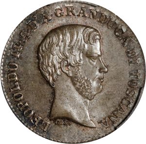 This specimen was lot 57407 in Stack's Bowers NYINC sale (New York, January 2024), where it sold for $600. The catalog description[1] noted, "ITALY. Tuscany. Fiorino, 1858. Florence Mint. Leopoldo II. PCGS MS-66." This type is listed for 1843-48 and 1856-58. These obscure little Italian states coins don't catalog for much but are very difficult to find. This specimen brought less than the catalog value. The fiorino, originally a gold coin equal to a ducat, was in the nineteenth century one quarter of a francescone, the Tuscan equivalent of a piastra.
