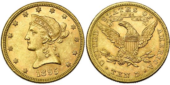"ETATS-UNIS, AV 10 dollars, 1895. presque Superbe. (United States, gold ten dollars of 1895, about Extremely Fine.)"