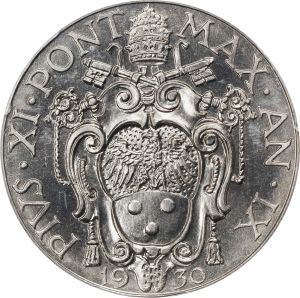 "Exceptionally Rare Post-Lateran Specimen Set, ITALY. Papal (Vatican City). Specimen Set (8 Pieces), 1930 Year IX. Rome Mint. Pius XI. All PCGS Certified. ...3) 2 Lire. PCGS SPECIMEN-66. ...INCREDIBLY RARE in specimen quality and as a complete set, this wondrous array of glistening Gems provides immense ocular satisfaction and emanates from the first year following the Lateran Treaty and the settling of the longstanding 'Roman question.'"