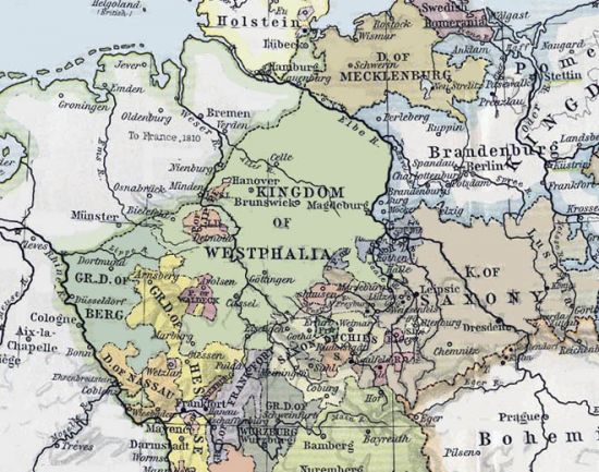 The kingdom of Westphalia was a puppet state set up by Napoleon to enforce the Continental System (no trading with Great Britain) in north Germany. Jerome, Napoleon's brother, served him faithfully, stripping his domain of men and money for the Russian campaign. The kingdom collapsed after the battle of Leipzig. At the Congress of Vienna, the area was restored to its former lords, Hannover and Prussia. This type was struck 1811-13 at the Cassel mint. Another gulden or 2/3 thaler was struck in 1811 for regular circulation (KM 117). The thalers of 1811 (Dav-933, -934) are rare.