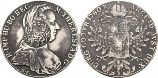 Shown is a countermarked Maria Teresa Thaler. It was lot 863 in an auction by Dr. Busso Peus Nachfolger on Nov. 3, 2010, and sold for US$489. The catalog description reads: "A Group of Exceptional Coins of the Imams of the Yemen al-Mansûr billâh Muhammad ibn Yahyâ, 1307-1322 H/1890-1904 AD Maria Theresia Taler (Günzburg 1780) 27.91 g. countermarked with an obverse die for a 1/20 riyal of imam Yahyâ (type issued 1337-1366 H, K./M. Y. 4. 1). Very fine."
