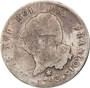 Altho the French Revolution famously began with the fall of the Bastille in June 1789, the upheaval was not immediately reflected in the coinage, which continued to be issued using the designs of the ancien régime. In 1791, the first "constitutional" coins appeared, including 3 deniers (= 1 liard), 6 deniers (= 2 liards), 12 deniers (= 1 sol), 2 sols, 15 sols (= 1/8 écu) and 30 sols. "Constitutional" demi-écus and écus appeared in 1792. Only then were the old royal designs discontinued. In 1793, the king was guillotined and a republic instituted. The republicans issued some brass sols and 2 sols and a silver écu de 6 livres before abandoning the system altogether in favor of the franc in 1795.