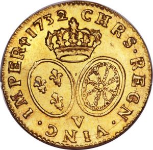 (This page contains material from http://www.coinfactswiki.com/wiki/France_1732-V_louis_d%27or) |