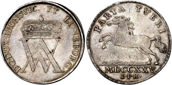 * [[Brunswick-Wolfenbuttel 1728-EPH 2/3 thaler|1728 "leaping stallion" ⅔ thaler]] | * [[Brunswick-Wolfenbuttel 1728-EPH 2/3 thaler|1728 "leaping stallion" ⅔ thaler]] | ||