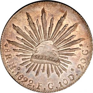 * [[Mexico 1892-Go RS 8 reales|1892-G<sup>O</sup> 8 reales]] | * [[Mexico 1892-Go RS 8 reales|1892-G<sup>O</sup> 8 reales]] | ||