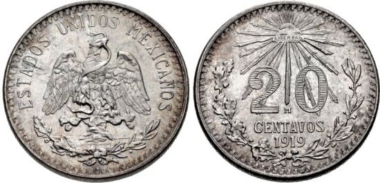 | + | * [[Mexico 1920-M 20 centavos|1920 20 centavos]] | ||