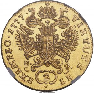 (This page contains material from http://www.coinfactswiki.com/wiki/Austria_1777-E_HG_2_ducats_Fr-191) |