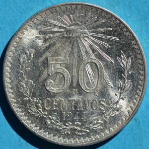 + | [[Image:Mexico 1944 50 centavos obv DSLR.jpg|300px|thumb|from the Mountain Groan Collection]] | ||