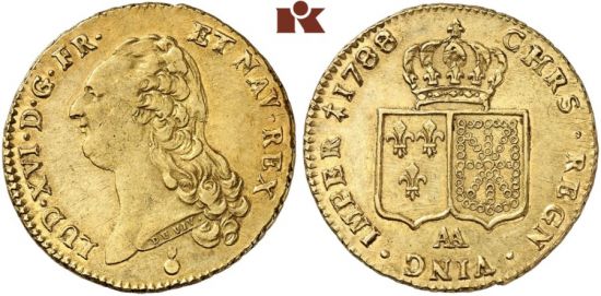 * [[France 1788-K 2 louis d'or|1788-K ''double louis d'or à la tête nue'']] | * [[France 1788-K 2 louis d'or|1788-K ''double louis d'or à la tête nue'']] |