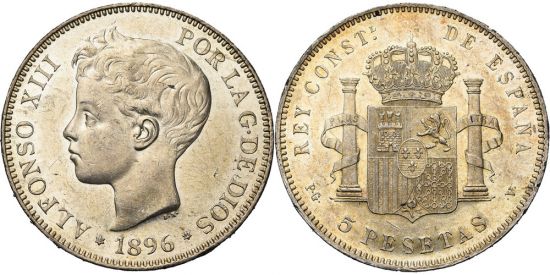(This page contains material from http://www.coinfactswiki.com/wiki/Spain_1896-PG_V_5_pesetas_%2896%29) |