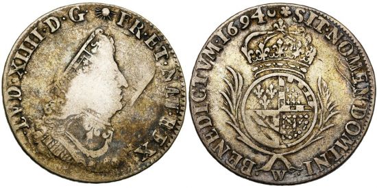 * [[France 1694-W ecu Dav-3815|1694-W ''écu de Flandre aux palmes'']] | * [[France 1694-W ecu Dav-3815|1694-W ''écu de Flandre aux palmes'']] | ||